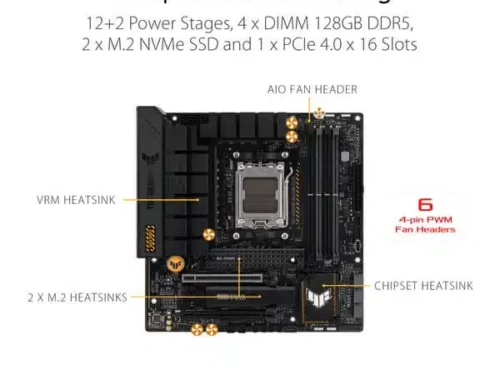 This motherboard is designed to support AMD Ryzen™ 7000, 8000, and 9000 series desktop processors, delivering reliable performance for modern systems. It supports high-speed DDR5 memory with overclocking up to 7600+ MHz for smooth multitasking and faster data handling.