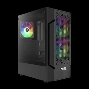 The Gamdias Aura GC7 ARGB ATX Mid Tower Case is a stylish and compact chassis designed to support ATX, Micro-ATX, and Mini-ITX motherboards, making it suitable for a wide range of desktop builds from everyday systems to entry-level gaming rigs. It features a modish mesh front panel with a built-in gradient design that works with three pre-installed 120 mm ARGB fans to enhance both airflow and visuals right out of the box. A panoramic tempered glass side panel lets you showcase your internal components with ease, while the interior offers thoughtful space for cable management, a PSU shroud for clean builds, and support for GPUs up to approximately 300 mm in length. Cooling support is strong with room for up to six fans in total and rear 120 mm radiator compatibility, helping keep temperatures in check under load. The top front I/O panel provides easy access to one USB 3.0 port, two USB 2.0 ports, audio jacks, and a reset/LED control button for convenience.