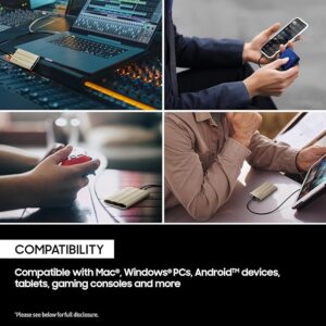 The compact, lightweight form factor makes the T7 Shield easy to carry, while plug-and-play support ensures simple connection to laptops, desktops, gaming consoles, and mobile devices. With advanced features like hardware-based encryption and compatibility with Samsung’s storage management software, the T7 Shield combines speed, security, and convenience in one portable solution.